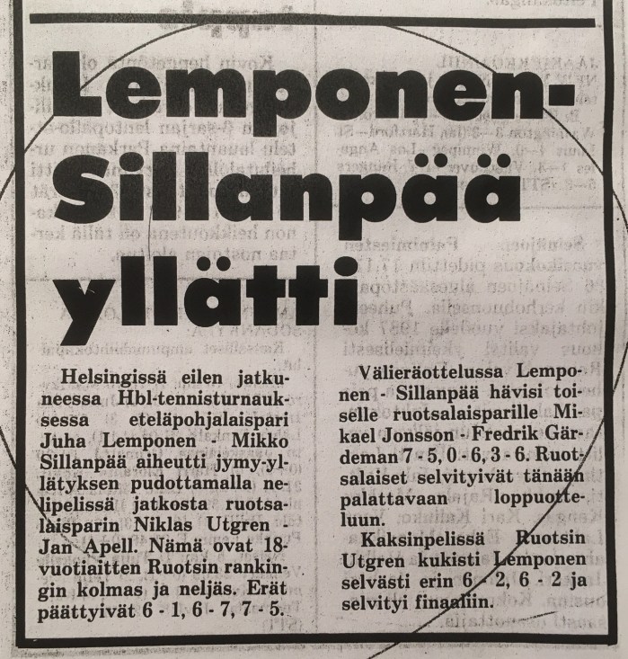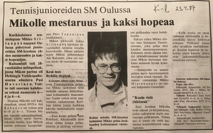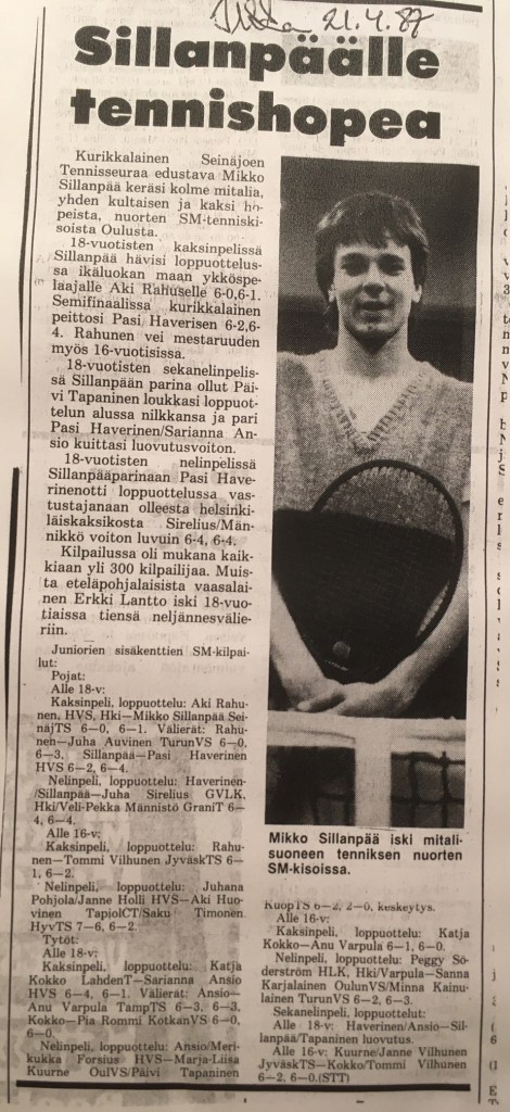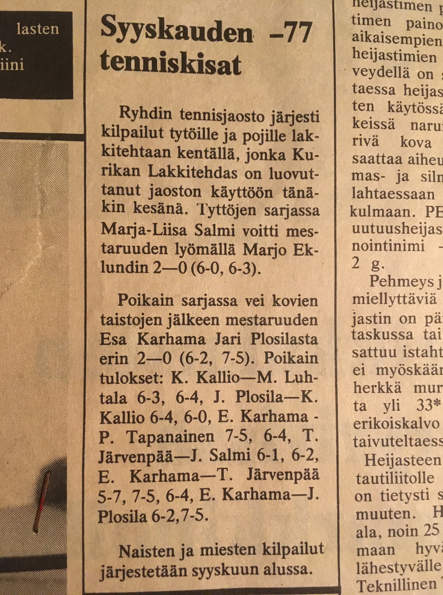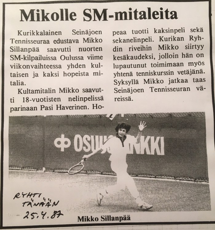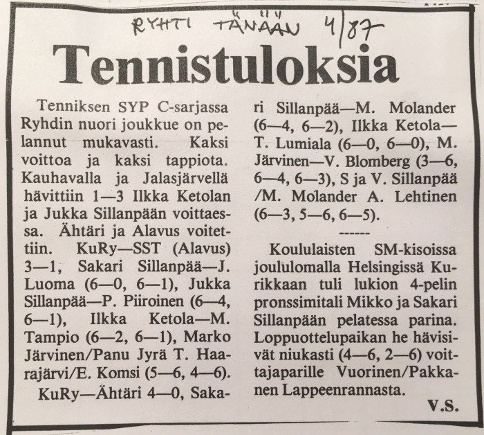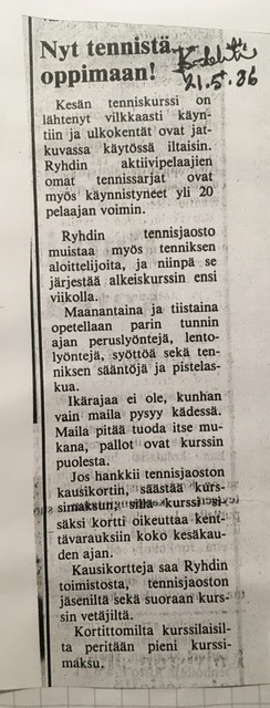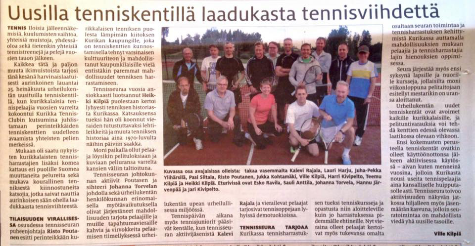 Marraskuun alussa vuonna 1992 Kurikka-lehti uutisoi tennispelaajien puuhaavan omaa lajin erikoisseuraa.